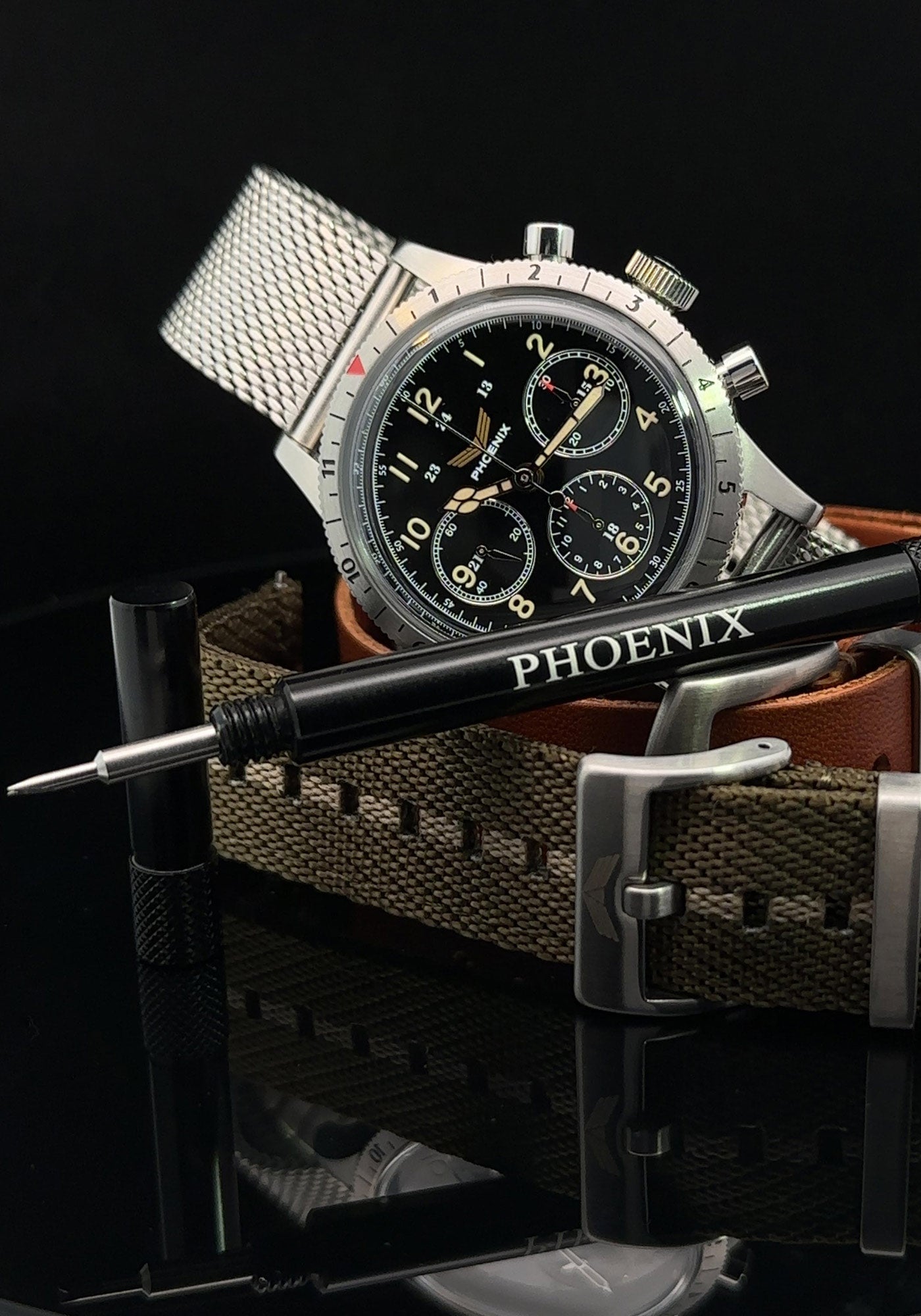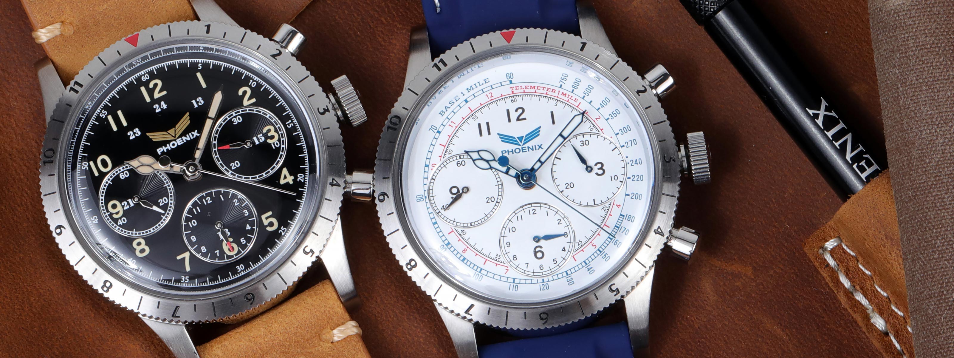 Visually, the Phoenix designs are inspired by watches built when the function of a wristwatch determined the form. The large, luminous numerals, visible center seconds hands, and uni-directional bezels that are de rigueur for modern dive watches became a necessity in an era without dive computers. Pilot's watches incorporate various telemeters, tachymeters, turn radius indicators and even circular slide rules - not because they look interesting on the dial, but because they were needed as either primary or backup sources for critical calculations. Today these various scales are rarely used for their ostensible purpose, yet they continue on as inspired designs recalling a more analog age.